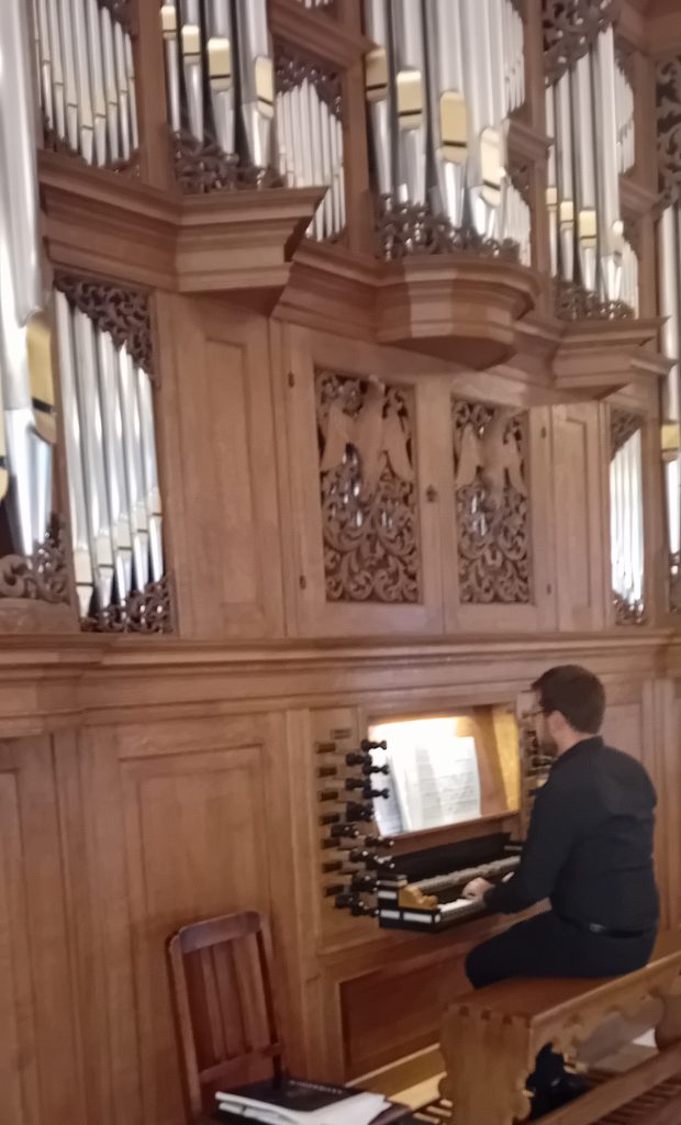 Het is een verstilde ervaring in Stad met verderop de kermis en Noorderzon. Nou ja verstild… als de registers met handenvol worden uitgetrokken en de maestro zijn voeten, we zien een begenadigd tangodanser in de dop, even snel beweegt als zijn handen voel je de innerlijke slijtage in de orgelpijpen: heerlijk. We genieten van de mooie bassen onder de vrolijke melodielijnen van de tot nog voor ons onbekende Scheidemann. Het programma doorlezend zie ik ‘Grand jeu’ bij Balbastre en inderdaad, groots wordt het. Dat zal het ‘ganz tolle lebendige’ zijn geweest. Antonio: gut gespielt, Mann!
