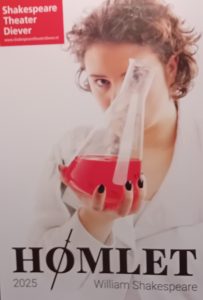 WOENSDAG HØmlet van William Shakespeare in Diever wordt zo’n 25 keer uitgevoerd. De brochure meldt 250 namen van medewerkers. Twee-hon-derd-vijf-tig! We zien een schitterend spektakel met in de hoofdrol Inge Wijers als HØmlet. Wat een speler, wat een tekstbeheersing. Het 1000-koppig publiek houdt zijn adem in als zij fluisterend Shakespeares filosofie over wat het leven tot leven maakt uitspreekt. Een meesterlijk spelende cast, een magisch decorstuk dat van houten wand transformeert tot mensenkop, verrassende tekstvondsten, humor, spelers met dubbelrollen, perfect licht en geluid, warme worst in de pauze en keurig publiek dat opschuift voor laatkomers. Het dubbelzijdige toneel toont met familiemoord, wraak, een toneelstukje in het toneelstuk,  weergaloos theater.