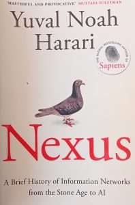 MAANDAG Nexus van Harari (The Global Bestselling Author of Sapiens) moet je lezen, hoor ik in anderhalve week van twee matties en door een toeval komt daar een derde bij. De aanbeveling is niet enkel vanwege de op de omslag afgebeelde duif. Van één van hen krijg ik ‘m te leen in het Engels. Godzijdank niet in het Hebreeuws, denk ik nog. Taaie kost, verwacht ik en trek er enkele weken voor uit. Ik krijg geen spijt. Waar Harari goed in is: eenvoudige begrippen als informatie, waarheid, werkelijkheid, met zeer interessante vertellingen beschrijven. Een voorbeeld: het in de markt zetten van Stalin, Jezus, Trump, gebeurt/de door ‘story telling’ met oneindige schares luisteraars die later menen dat alles echt is en op waarheden berust. Dat ook Harari het classificeren van entiteiten lastig vindt blijkt uit de opsomming: Arabieren, Palestijnen, Joden en Koerden, waar hij landen op dezelfde plaats stelt als religies.
