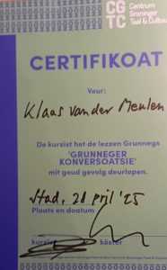 Binnenkort ons lustrumpartijtje van buurtvereniging A-Kwartier. Nog binnenkorter het feestje in de stationshal van Hoofdstation Groningen. Ik noem het nog maar een keer: De NS organiseert enkele culturele dagen in de stationshal van Nederlands fraaiste stationsgebouw. In mij is iemand gevonden die in drie talen poëzie voordraagt. In het Fries wordt jeugdliefde Atsje bezongen. Een Groningse primeur wordt een vers waarin een staartbot, waterschap, Ramadan en een sport-b.h. bij elkaar komen. In het Nederlands gaat ’t over (o.a.) de wulpse Drentsche Aa met sensuele lissen, M. Verstappen en Zomertuin, vanwege onverwacht bezoek oplopende spanning in een zomertuin (dit vers in mijn moedertaal en het Nederlands). Data: 21, 22 juni en 5 en 6 juli. Klaas de drietalenman/drijtoalenkerel/trijetalenjongen: 22 juni van 12.45 – 13.00 uur.