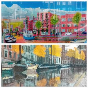 MAANDAG Een van de lustrumactiviteiten van buurtvereniging het A-Kwartier is een kunstroute langs de A-straten waarbij schilderwerk van stadsgezichten in het A-kwartier door Groninger kunstenaars achter ramen is geplaatst. Niet alleen vroegere hoerenlopers zullen de parallel met raamprostitutie uit vervlogen tijden herkennen.
