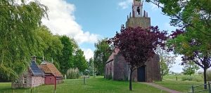 DINSDAG Een eigen kerk(je) bouwen was het plan. Boer Harkema liet 12.000 stenen uit België komen en bouwde tussen 1985 en 1998, met hulp van vrijwilligers, een klein kerkgebouw op zijn eigen grond, compleet met orgel, preekstoel, heiligenbeelden. Locatie: de driehoek Aduard, Den Ham, Fransum. Omdat hij geen vergunning had werd een bouwstop opgelegd, maar toen de gemeente de toeristische potentie zag werd het bestemmingsplan aangepast. Ernaast staat een miniatuur boerderij. Een paar bruggetjes erbij, een ophaal-, boog- en draaibrug en klaar. Nu de naderende aftakeling nog een halt toeroepen.