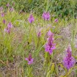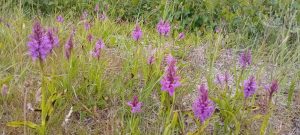 Even geloof ik haar niet als M zegt dat hier een veld orchideeën staat. W’s ogen worden groot. K en A zetten / nemen respectievelijk hoed en muts af en gaan door de knieën: zo ver het oog reikt: orchideeën. Verder nog strootjes en grassen in ontelbare variaties.