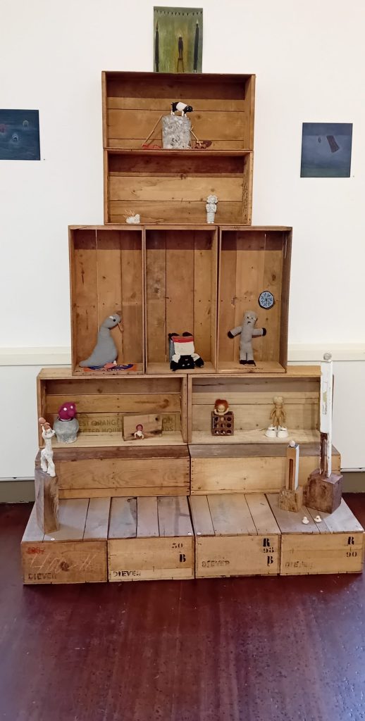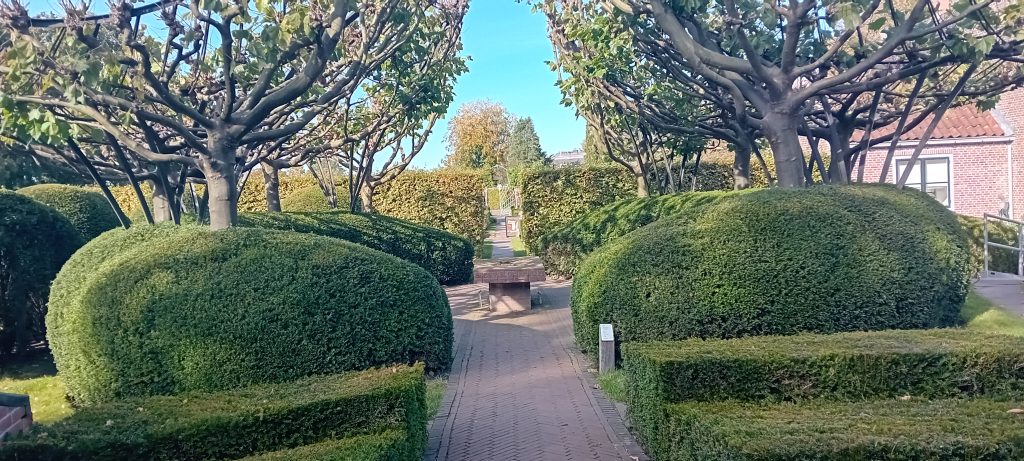 Sommige beeldend kunstenaars zijn ook ondernemer: ze zien kansen en pakken die. Zo ken ik iemand die schildert, ontwerpt, last, print, zaagt, snijdt, alles met degelijk- en vakkundigheid en articiteit. Rijd Aduard in en je ziet prachtige panelen aan een grote fietsenstalling, langs het Van Starkenborghkanaal drie R.V.S.- banken (die nog goed zitten ook) met thematisch gegroepeerde uitsneden. In Norg deed hij drie keer mee aan folly-tentoonstellingen. In museumwinkels tref je ijzeren roerstaafjes met alle een eigen design en nu in Leek een stalen duiventil.