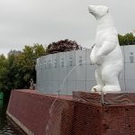 Terwijl duiven vaker in het verdomhoekje zitten, ik schreef eerder dat Groningen de stadsduif (nauw gerelateerd aan de postduif, Unesco’s immaterieel cultureel erfgoed) planmatig uitroeit, geven kunstenaars doffers en duivinnen de eer en ruimte die ze verdienen. Van den Berg bestudeerde de geschiedenis van de duiventil in Noord-Nederland en construeerde een stalen til. Van de gemeente Westerkwartier, die in een nieuwe woonwijk in Leek ruimte aanbood voor beeldende kunst, kreeg hij de opdracht voor het maken van een kunstwerk.