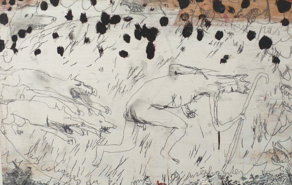Ik probeer me niet door Ploegkunst te laten afleiden en concentreer me op mijn tante. Ze was al oud en hoge ouderdom maakt verdriet lichter zoals het whisky lekkerder maakt. Deze tante was een speciale. Ze was groot. Jeugdherinneringen poppen up. Ze droeg lange, strakke rokken waarvan het zijritsje altijd op springen stond. Haar boezem de billen van Obelix. Het was net na kerst, mijn tweelingbroer en ik waren jarig. Tante trok me op haar schoot. Ik speelde veel met magneten. Mijn magneet klemde aan tantes bovenbeen. Ik hoopte op een stalen heupkop. Het was wat metaal van jarretellesclips die de magneet door de dunne rokstof detecteerde. Of me dat opwond? Het had mijn interesse. Tante verschoof onrustig op de stoel en had mijn belangstelling feilloos geregistreerd, voelde ik. Ik zal acht geweest zijn. Bij de verspugers op school zat ik in de hoogste regionen en mijn inwonende oom had me al door de neus leren boeren. Tante feliciteerde me. Ze had een kunstje verzonnen. De rijksdaalder had ze ingepakt. Een strak stuk plakband hield het papier bij elkaar. Ze vroeg me, ‘blijf bij mij heer’ of iets over nachtelijke herdertjes neuriënd, het geschenk met één hand uit te pakken. Ze wilde mij bezighouden, puur om mijn moeder te ontlasten. Die had genoeg drukte aan haar hoofd op een kinderverjaardag. Tante lachte samenzweerderig. Terwijl mijn rechterhand bezig was de onmogelijke klus te klaren, vlijde ze mijn linkerhand op haar bovenbeen en wreef een beetje heen en weer totdat mijn hand de ijzeren clip voelde. Ze knipoogde onzichtbaar. Mijn tweelingbroer kon al wat blokfluiten en zette welgemoed ‘All I want for Xmas is you’ in.