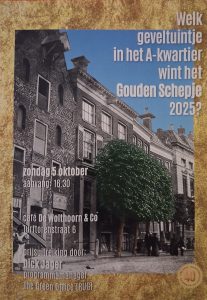 ZONDAG Goudenschepjeuitreiking in de Wolthoorn. Uit 21 genomineerden wordt gekozen: door het plakken van groene stickers worden twee tuintjes als prijswinnaars aangewezen en krijgen van Green-Office manager Dick Jager het felbegeerde gouden schepje uitgereikt: eigenaren Fikkers en Jelsma zijn voor een jaar lang fiere koningen van de geveltuinprijs. In het oergezellige, stampvolle achterlokaal van café de Wolthoorn vieren we de binnenstadsvergroening.