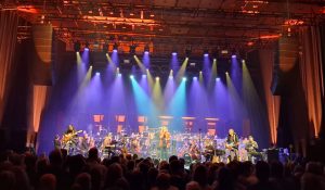 DONDERDAG De Kast en het NNO: symfonisch en poppy, een kasteel van geluid in een met 1600 personen uitverkochte Oosterpoort. Zanger, bandleider en ver familielid Syb van der Ploeg leidt de zaal naar waar hij wil: zwaaien, roepen en vooral keihard meezingen. De teksten leggen het af tegen de muziek: een gewaagde en goed uitgepakte combi met het NNO en wow, wat een stem. En wat een prachtige mix van Fries en Nederlands; Syb kan niet laten de voor de helft met Friezen gevulde zaal in te wrijven dat Groningen 500 jaar geleden gewoon Fries was.