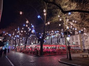 MAANDAG Maastricht is de grote roomse pendant van protestants Deventer: veel historische gebouwen, daterend tot de middeleeuwen, smalle binnenstadsstraatjes en een bekende rivier. De oude binnenstad met twee beroemde pleinen (het Vrijthof en Onze Lieve Vrouwe-plein) telt talloze terrassen, bijna zonder uitzondering van klimaatonvriendelijke heaters voorzien. Ook de steeds luidere roep om rookvrije terrassen gaat aan Maastricht voorbij.