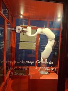 VRIJDAG Museum aan de A presenteert zich in het Groninger Museum met ‘Wie schrijft geschiedenis?’ Eye-catcher is een robotarm die op glas schrijft. Bezoekers mogen, door commentaren te schrijven onder vragen bij getoonde museumstukken, meepraten over de toekomstige museuminhoud. In de inleidingen komen al existentiële vragen als ‘wat en voor wie is een museum’ aan de orde.