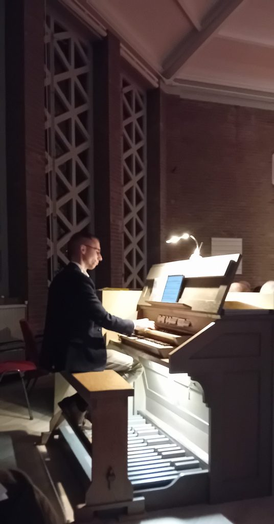 Terug naar Gert. Vlakbij hem zittend zie je de virtuositeit van de vier ledematen op de nieuw ogende elektropneumatische Verweijs uit 1955 met een lekkere holpijp in plaats van de holquintadeen. Waar profvoetballers al moeite hebben met tweebenigheid, zien we een tovenaar die tweebenigheid paart aan tweehandigheid. Pedalen en klavieren voegen zich naar de muziek van Bach via Gert. Dat de registers hier mechanische knopjes zijn, soit! Als Nederlands Songfestivaldeelnemer Claude volgend jaar in Bazel een variatie op Bachs ‘Jesu bleibet meine Freude’ zou zingen, was Joost Klein snel vergeten.