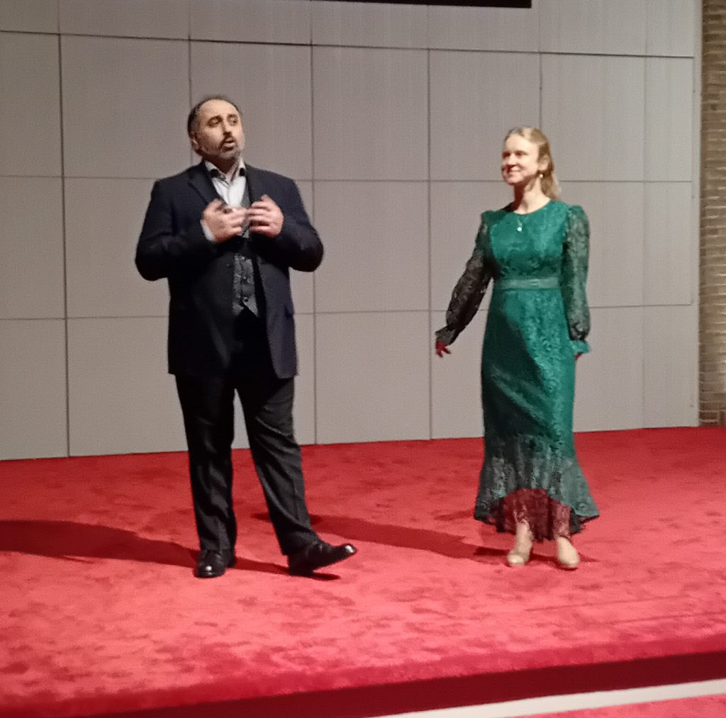 En dan het duo Nodari en Tatiana. Oekraïne in Aalden. Als ik mijn ogen even sluit meen ik Ivan – wie kent hem nog – Rebroff te horen en als ik mijn ogen weer open: te zien. Het ‘Stille nacht’ wordt gretig meegezongen. Oekraïense gasten uit Coevorden weten niet wat ze horen van beide deelnemers aan de halve finale van Holland’s got Talent. De drie nummers toveren een lach op de gezichten van het publiek.