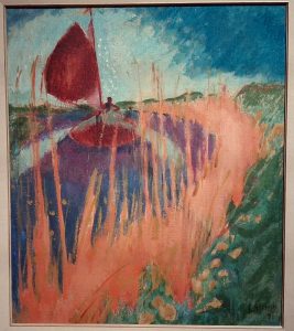 Mijn welgemeende complimenten voor de uitgebreide tentoonstelling ‘Nieuw Licht – De Ploeg’. Wow, niet eerder zag ik in het GM zo’n bijzondere, fraai ingerichte Ploegtentoonstelling, met naast de mij bekende stukken van usual suspects Altink, Werkman, Wiegers, Dijkstra, Pott, Martens en meer, voor mij onbekend werk: een kleurenolieverf van Werkman, een was/olieverf van Altink, een naakt van Kleima, poppenkastpoppen van Wiegers, prachtige opgeblazen zwart/witte historische foto’s. Hut ab, chapeau, pet af met een diepe buiging.