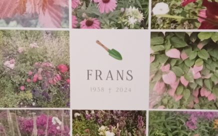 Er valt een rouwkaart op de mat. Eerst denk ik dat het een plantencatalogus is van verzendhuis Hamersma in Waskemeer. Ik zie acht plantensoorten, o.a. de zonnehoed, de Phlox Paniculata, de lelie Anasthasia en de rode klaroen. In het midden de naam FRANS en een tuinschepje. Typisch Frans de leraar/tuinman: enkele planten zijn verrekte lastig […]